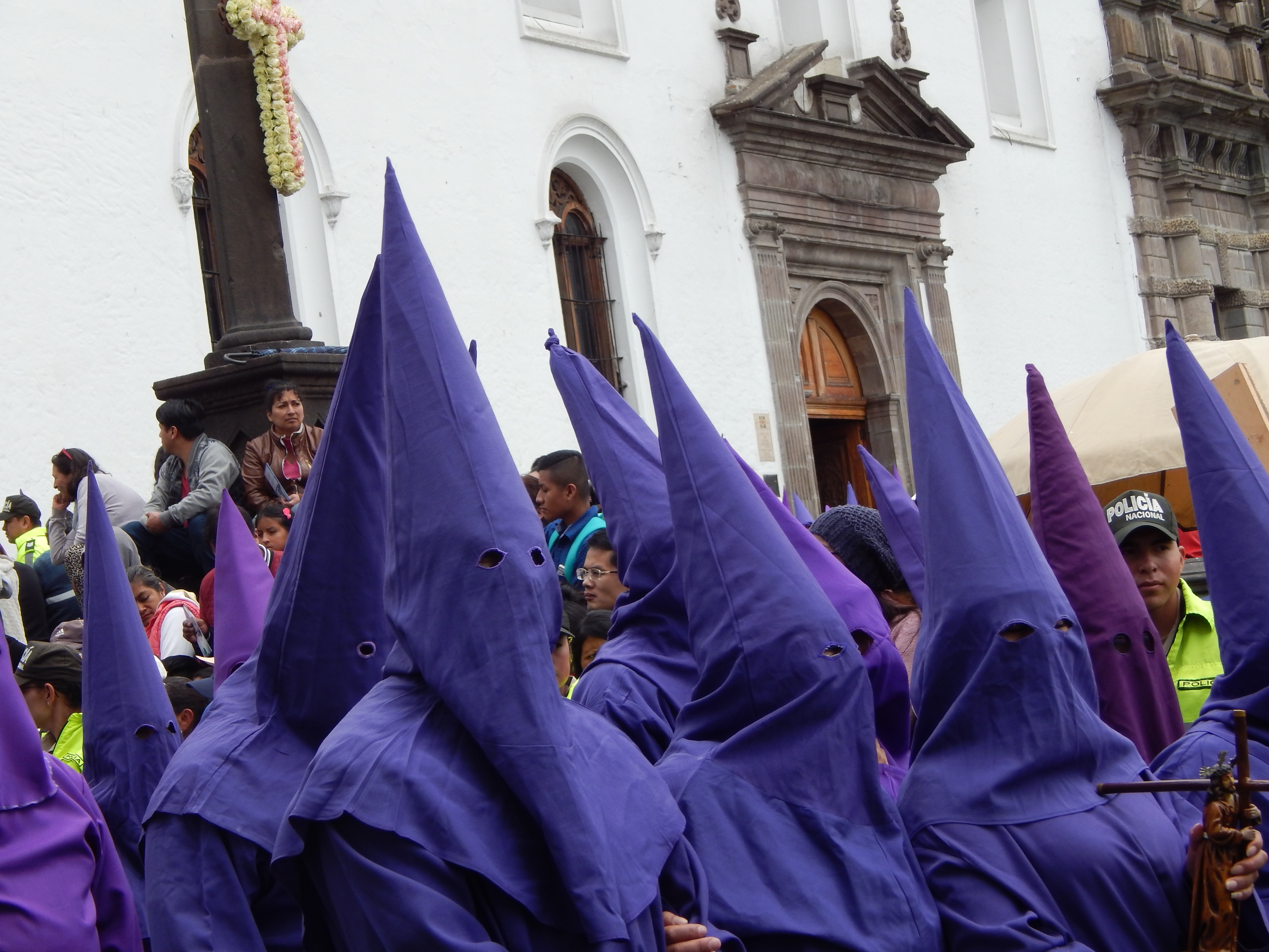 On what turned out to be Good Friday morning, I left Cumbaya for Quito proper, where I had six nights booked in a converted convent right off San Francisco square for $634, the Hotel Boutique Portal de Cantuna (Bolivar Oe 6-105 | Centro Historico, Quito 170150, Ecuador). I was appreciating the more authentic hotels I was staying in, even though this one needed to have a lot of work done to it. But for a traveler who can look past that, the location in the historic center of Quito couldn’t be beat. The Good Friday procession started and ended right in front of my hotel. Angela knew the owner, so she called and arranged for them to send a car for me early in the morning, since many of the streets were being blocked off for the procession.
