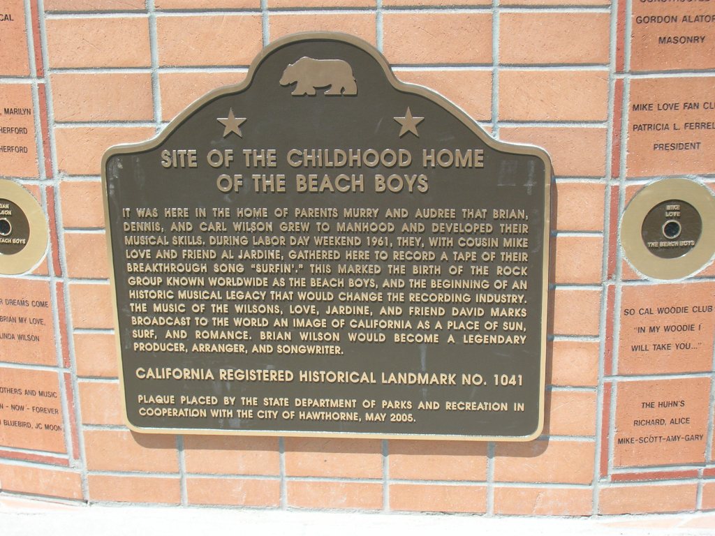 If you plan to travel to the Los Angeles Area, try to visit the Beach Boys Monument in Hawthorne, a suburb of LA by LAX. It is the exact spot where the Wilson house once stood, and is now California Historical Landmark 1041 managed by Hawthorne Parks and Recreation. It was dedicated in May 2005 with Brian Wilson and other family members and friends in attendance.