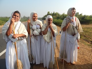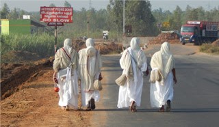 Women keep religious traditions alive in probably all societies. In India not far from Madurai, we met nuns of the JAINS faith walking on the road bare foot. These holy women had walked from Chennai and were carrying brooms, an empty pot for a small amount of food or water, and were dressed in white .They have renounced their earthly lives and family. They chatted with us a bit before walking on, and I offered a donation, but they refused. They walk barefoot and live a life of penance. They eat just one meal a day, and walk from house to house to stay with other members of the JAINS faith. As they left us, they walked with their backs to us down a dusty road on a hot day with little food or water. But they had more faith, courage, and a sense of tradition then most could understand. And like their sisters in so many of the countries I have visited, they were the ones keeping their particular traditions alive.