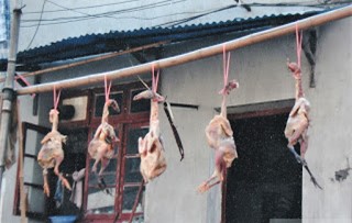 Clotheslines can take different forms. Consider the clothes for sale and hanging out on the streets of a major city like New Delhi or Hanoi, for sale to the locals. Clotheslines can also come in the form of workers in Asia, sewing clothes for a particular manufacturer. In a batik factory in Bali or Malaysia or a women’s’ cooperative in India for instance, it reveals how the women work and the conditions in which they do so, usually non air conditioned in humid environments, and wearing hajib on their heads or covered from head to toe for religious reasons for 14 hours a day or more. Any open air market in just about any country, used primarily by and for locals, is practically an open window for uninvited passers- by. The occupants maintain their privacy, but the visitor can still peek inside.