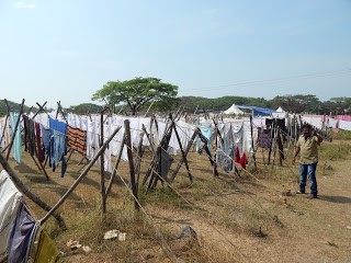 I was in Cochin during their annual Binnale Art Festival. Art is literally all around, some produced by students as part of the festival, some by local artists just in honor of the festival. There are venues all over Cochin. My tuk tuk driver took me to most of them, one of which was inside a tree house. I climbed the ladder to get up into the tree house to see the art inside and what did I see? All the paintings were of clothes on clotheslines! I was astounded. The artist obviously saw what I did in the world. That by observing something as mundane as what is hanging on a clothesline, we can gain a richer cultural awareness of people then we would have ever imagined. The clothes are not just a marker for what we have experienced and seen, but a true remnant of the culture.