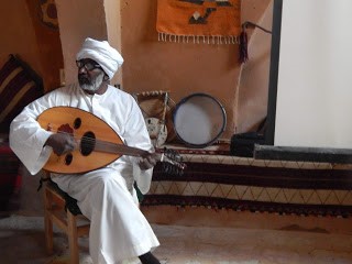 While I saw many excellent antiquities in Egypt, and especially appreciated those we saw in Luxor, Abu Simbel and Cairo, I also greatly appreciated my solo tour of Memphis and the pyramids of Dashner and Saqqara, a much more meaningful desert experience than seeing the Great Pyramids themselves and all the camel and donkey vendors, not ot mention he hordes of children. However, as the tour progressed and we flew to Aswan to learn about that part of Egypt and the role the damn played in helping to control the from the raising Nile River, I was unexpectedly taken by our overnight in the Nubian village outside of Abu Simbel Village. The accommodations were Nubian style, with round domed roofs and additional Muslim stylings. This part of Egypt used to be the Northern Sudan, which intrigued me all by itself. At dinner we met a wonderful Nubian man who told us about their culture, played the lute for us, and showed us what is considered the instrument that was the first guitar! As a former guitar player of many years, this was of great interest to me. Any musical aspect of travel automatically becomes a highlight for me, and today was no exception.