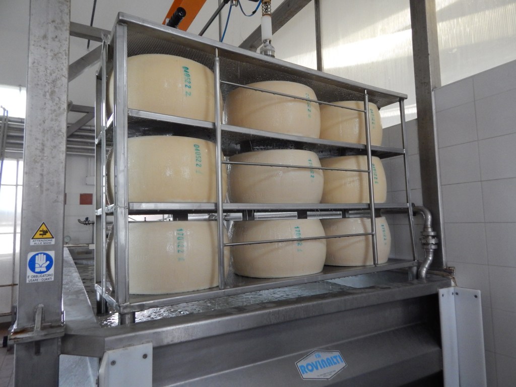 We actually watched Parmesan cheese being made manually in huge vats. It was quite a production!  They manually separated the curds from the whey in one vat. Then in the other vat, left over from the day before, they were able to extract 50 kilos of Parmesan cheese from the whey in the previous vat, and carried it out by cheese cloth then cut it by hand. From there, they placed each half in a container so it could form the shape of a large wheel, before going off for ageing. They even washed down the vats and all the utensils with the whey from the vat. They had their hands inside it too, but later put a huge thermometer in so we could see how very hot it was. The left-over whey was siphoned out of the vat and saved for the next day. We missed watching them add the cow’s milk, which was an early step in the process. We observed this cheese production at an agriculture and hospitality school, where the students learned all the elements of the program, then selected their specialty based on interest.