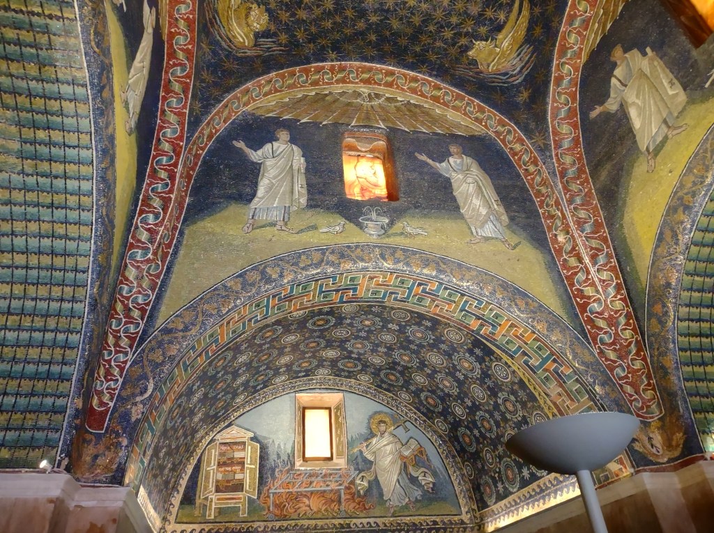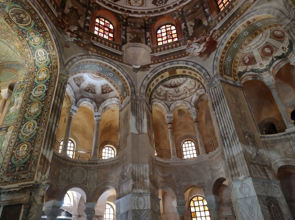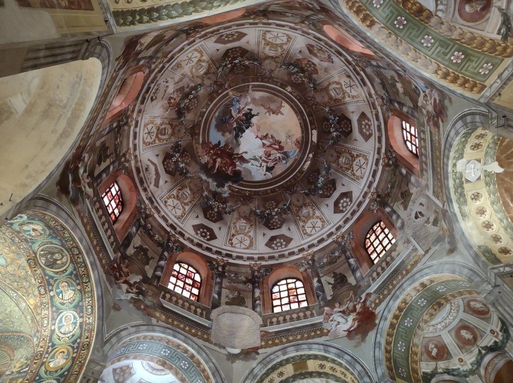 On the Tuscany and Umbria trip, I took the pre-trip which included Bologna and Parma, and an optional excursion to Ravenna to see the famous mosaics in three different churches. Two of the three churches had reached basilica status. However, the 1400-year-old Basilica di San Vitale, built in about 550 AD under the rule of Emperor Justinian, stood out the most. It was indeed grand and impressive, with scenes from both the Old and New Testament all in mosaics. It not only reminded me of the Hagia Sofia in Istanbul, but it turned out to be a template and inspiration for its design just a few later years. It also has mosaics depicting the life of Byzantine Emperor Justinian. The Baroque frescoes were completed between 1778 and 1782. This Basilica was so impressive I had to sit in the pews to take it all in.