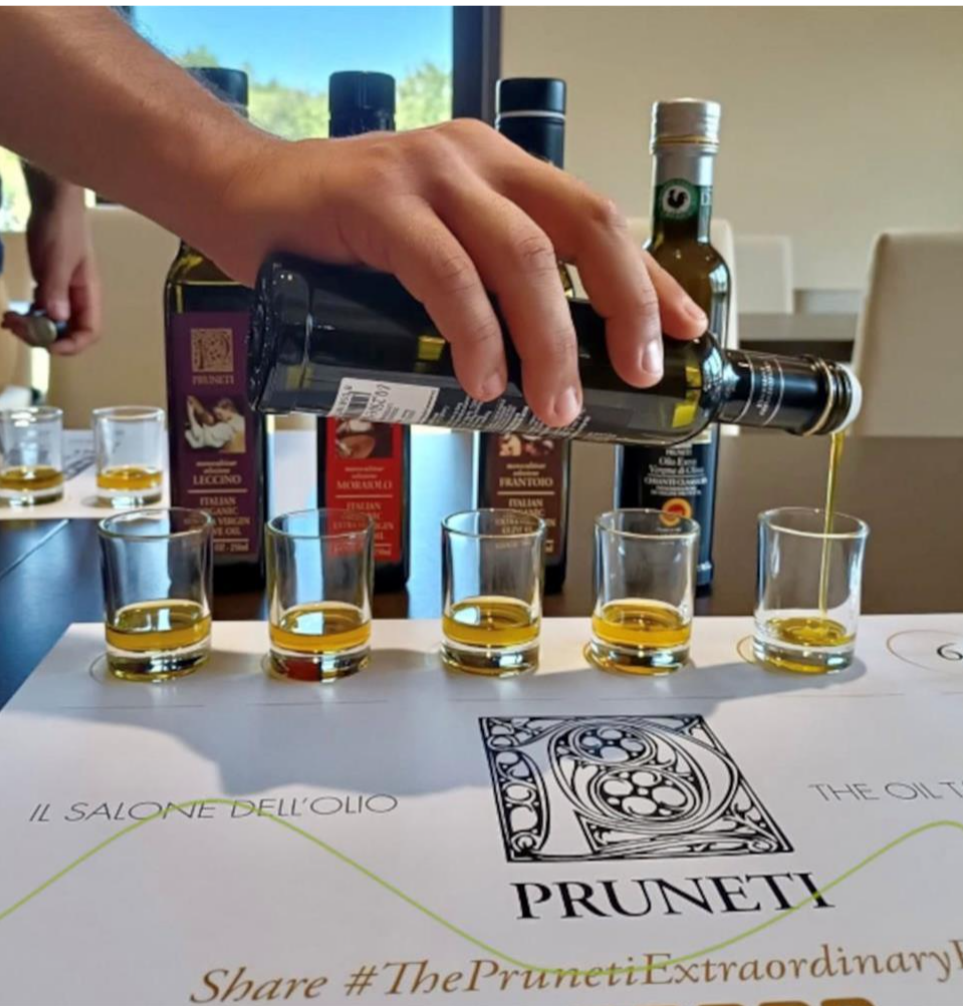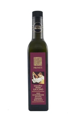 Pruneti Leccino Biologico This medium intensity organic extra virgin olive oil is produced from green Leccino olives and has notable aromas of grass and green herbs. Its a Best In Class award winner in 2021 from Monocultivar Olive Oil. It pairs well with leafy green salads and raw vegetables, and is also good with carpacchio of fish or red meat, savory pies, aged cheeses, and dipped with bread.