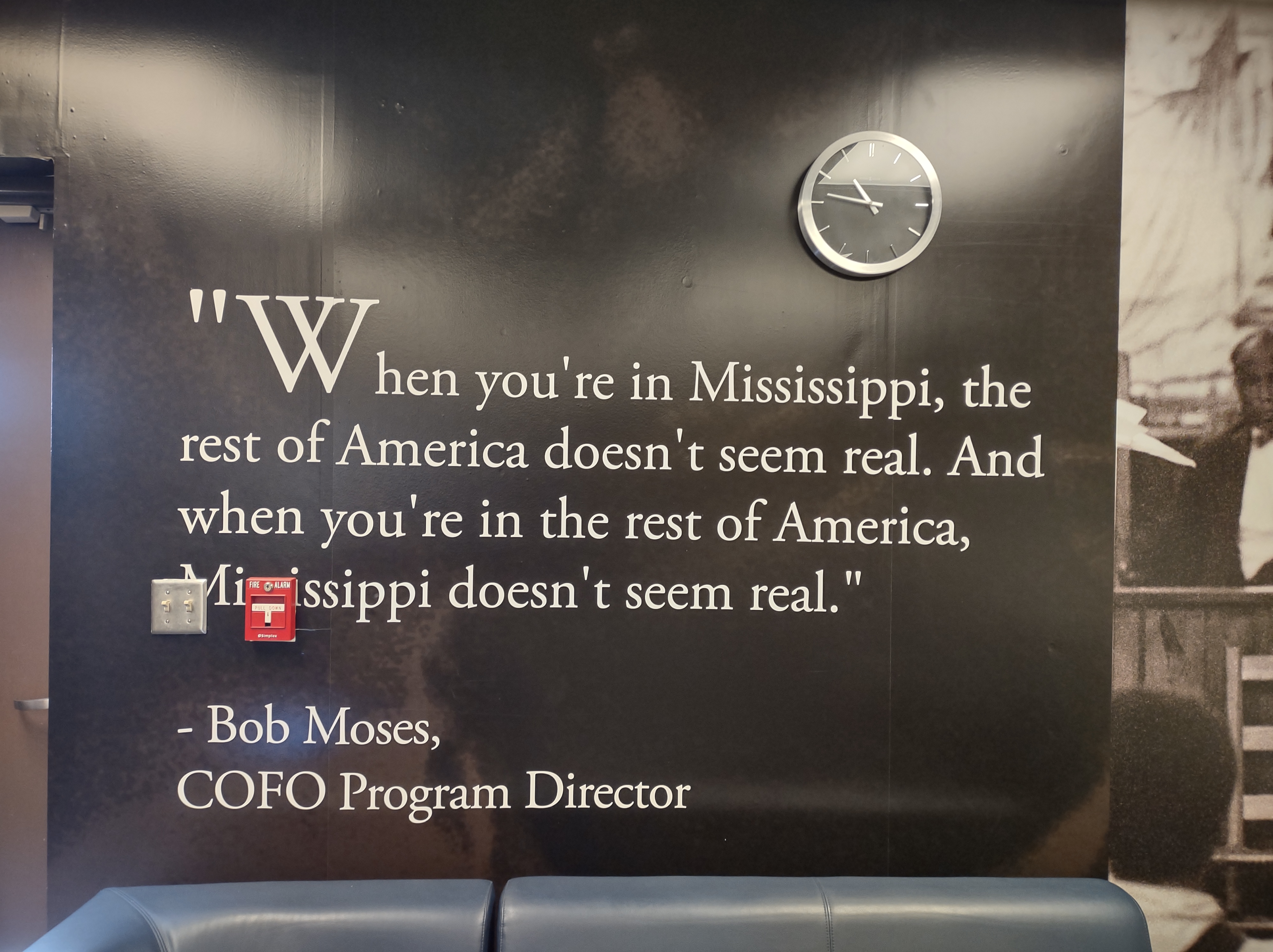 We were on the campus of Jackson State University to meet with a professor of history to learn more about the Freedom Riders and the community organizing that had taken place in the very room where we met. It was not part of Jackson State University back n the 60s, but over time the land was acquired and now it’s just down the street from the main campus. Organizations like SNCC (Student Non-Violence Coordinating Committee) and the SDLC (Southern Christian Leadership Conference) were born or grew further there. Mississippi was still under Jim Crow laws and the youth wanted to help the citizens register to vote and be able to ride busses like everyone else and without harassment. It was all a grassroots effort that is part of the struggle that still goes on today. A community organizer named Bob Moses led the way in this effort that today is named COFO (Council of Federated Organizations.)
