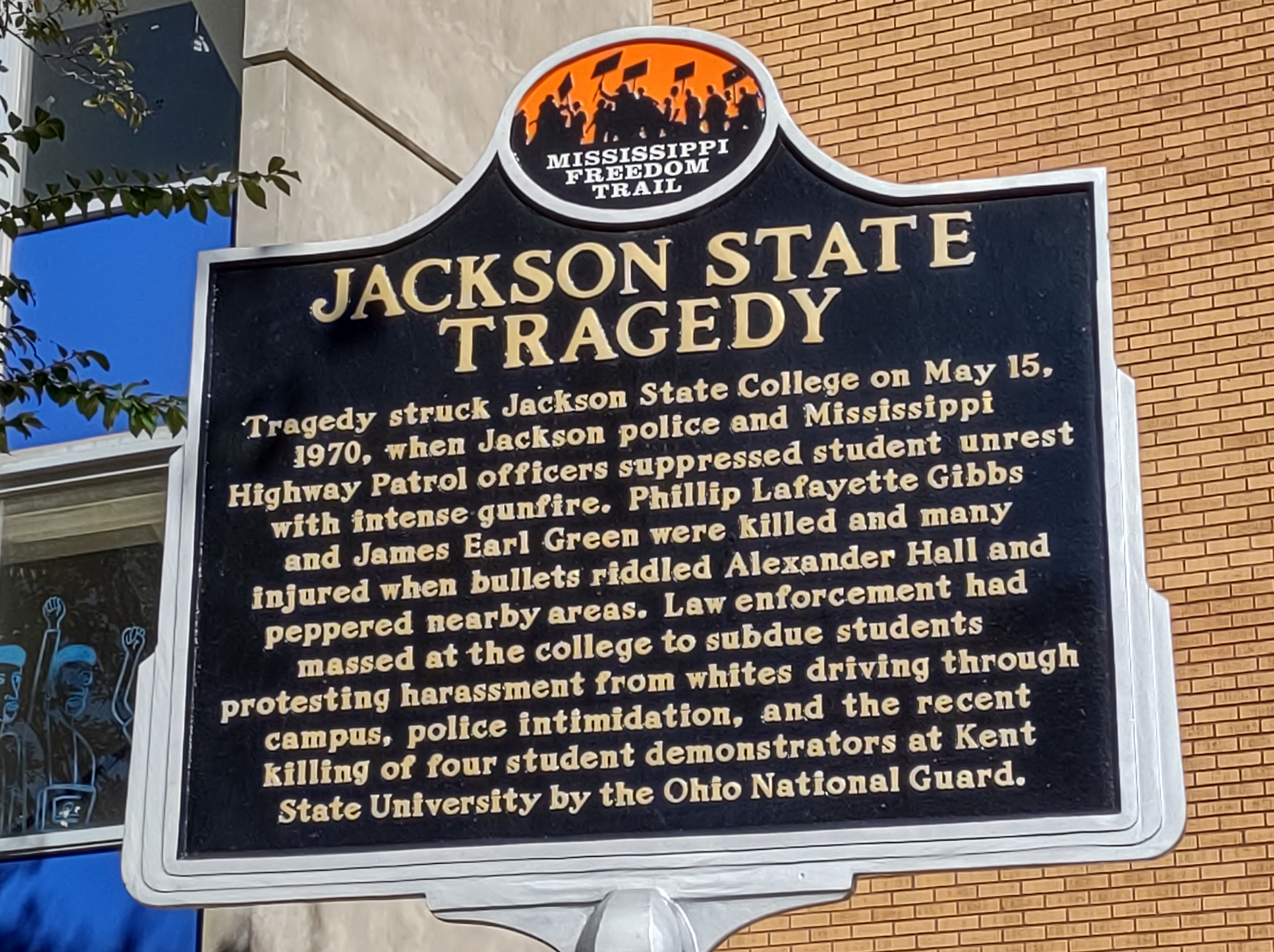 When we had the discussion about the role of COFO in the Civil Rights movement, I asked very specifically about Jackson State, since I knew two students were shot down there in 1970 around the time of the Kent State shootings. I had started to wonder if the killing of the students was more racially motivated then reported, since it had widely been reported as being part of an anti-Vietnam protest. Apparently there had indeed been peaceful anti-war and anti-racism, protests (against the Jim Crow laws) going on that day. However, that night, at the time of the shooting, there were no protests going on at all, and at midnight in front of the women’s dorm certainly nothing about Vietnam. Later that night is when the police came out and killed the students who were just passers-by near the women’s dorm.