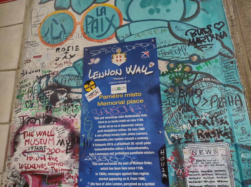 The Wall is located near the French Embassy and has been decorated with messages and short poems protesting against the government since the 1960s.It became associated with John Lennon and the symbol for Western freedom after his assassination in December 1980 when people started to write John Lennon’s lyrics on the wall. In 1988, still under Communist rule, protesters wrote their grievances on the Wall. The desire for freedom became known as “Lennonism”. Authorities tried to paint over the protests on the Wall, but the new paint was quickly covered over once again with calls for peace , love and freedom. The Wall was frequently used to convey messages of protest from both sides during the time of the Velvet Revolution.