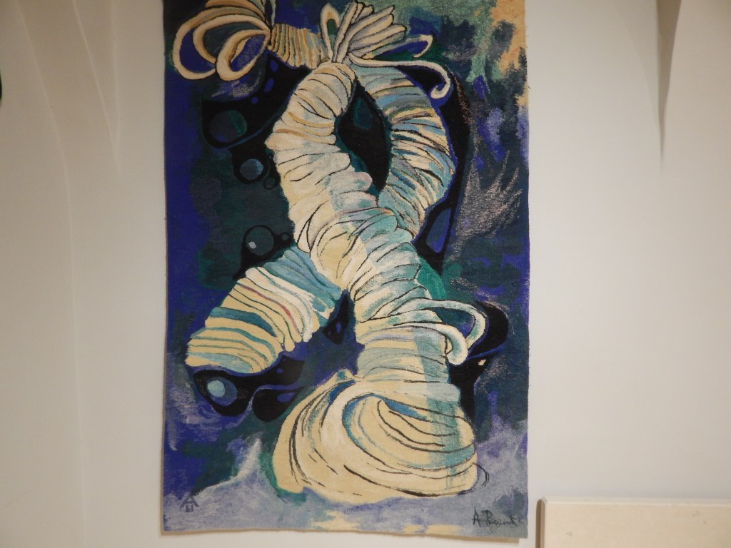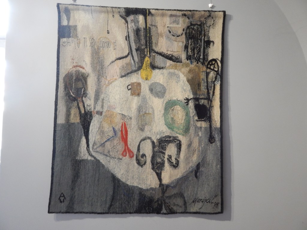Novi Sad is a hopping place at night with people sitting in the center square amid music which we listened to while we had our after-dinner gelatos. But there continued to be more art the following day when we went to see some artistic weavers at work. Artistic because the designs had been laid out for them by artists, and the women doing the weaving followed the patterns of designs to create some of the most beautiful woven wall hangings I have ever seen. In some cases, the original can’t be sold, but if additional woven hangings are made using the same design, those can be sold. We saw many scraps of remnants which were used for further decorating.