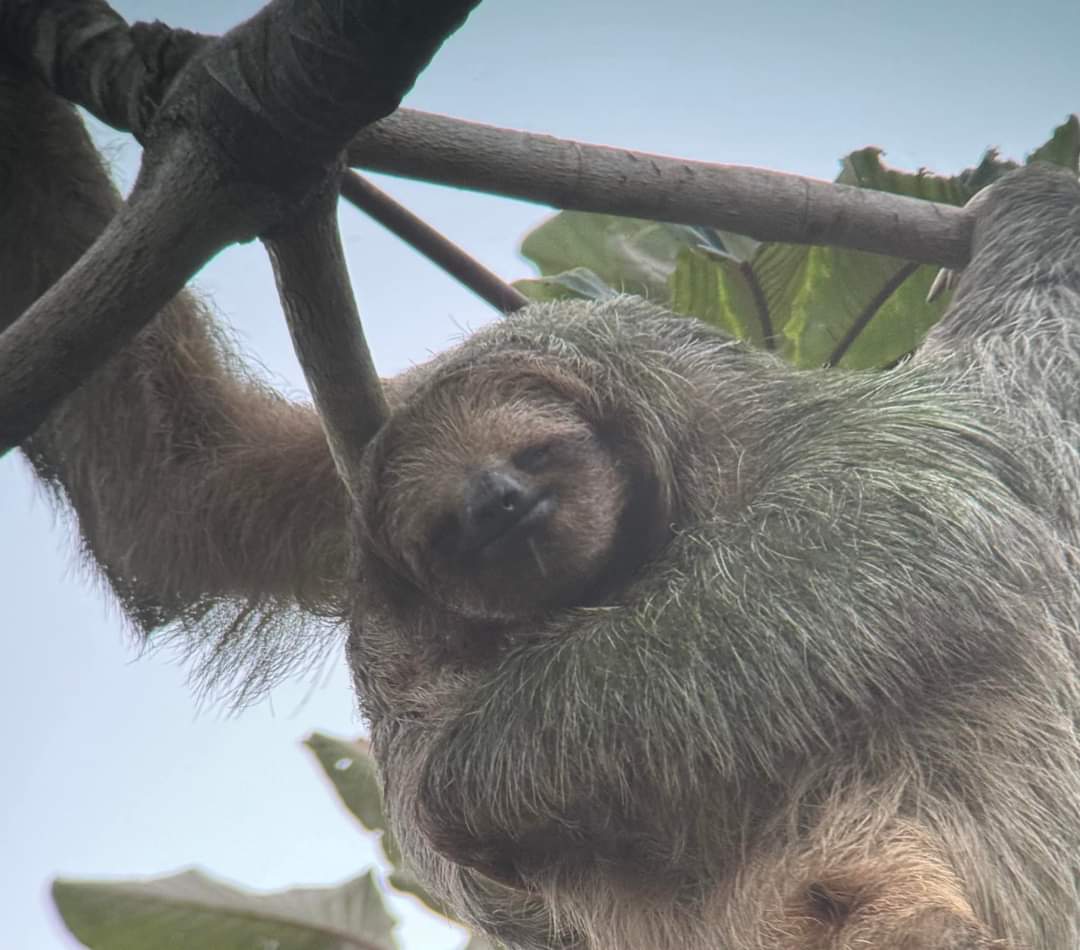 Our first encounter with the Pura Vida nature of the sloth was at the first rainforest lodge where we stayed. There was at least one sloth who had become apparently domesticated and decided to join us for dinner one night He slowly and deliberately took his time climbing around our dinner table while people took pictures. On another occasion, our tour bus had to come to a complete stop for an extended period because a sloth was out among the general population and decided to cross the road. We all laughed because we knew this gentle creature would take his time before getting to his destination. We waited patiently joking about who had the right of way in Costa Rica before we were able to continue. Pura Vida indeed!
