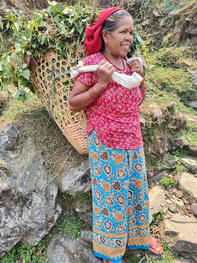 The following day was a storybook day for Nepal trekking and small villages. We saw so much! We visited a local family and school, but when your purpose in trekking is to see how the local people live, it was perfect. We were also happy as we trekked to see that the Grand Circle Foundation had paid for a pathway of steps from the main road to make life easier for the local community. The community of women we met at one stop were the wives of migrant workers, who were working in any one of several countries and were sending money back home. The women supported each other as a community of mothers and were very tightly knit. After we finished our vegetarian lunch with them and had gone inside their homes, we could hear the women all singing as we walked away. It was a wonderful, spontaneous moment for us to hear their joy as we momentarily stopped trekking.