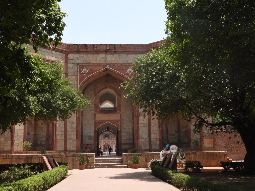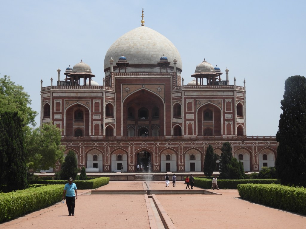 Next was Humayun Tomb, the inspiration for the Taj Mahal. I first learned about this tomb when then Secretary of State Hillary Clinton visited the site while on official business. The Mogul Humayun buried in the tomb died from complications after a fall. His wife had this tomb built in his memory. That dynasty of Moguls in turn went on to build even more memorials based on this modification of Islamic architecture; the Taj Mahal, which we all know is a monument to the love of one Mogul’s wife; a baby Taj in Agra, and a baby Taj I saw on this trip in Aurangabad five hours North of Mumbai. Both baby Taj monuments were built by the children of the man buried in Humayun’s tomb in a tribute to their late parents. This whole family is responsible for some of the great architectural wonders in India. There is a whole complex of tombs in the surrounding gardens, which are a complex of gardens, apparently based on the Islamic Quaran and the concept of going to paradise after death.