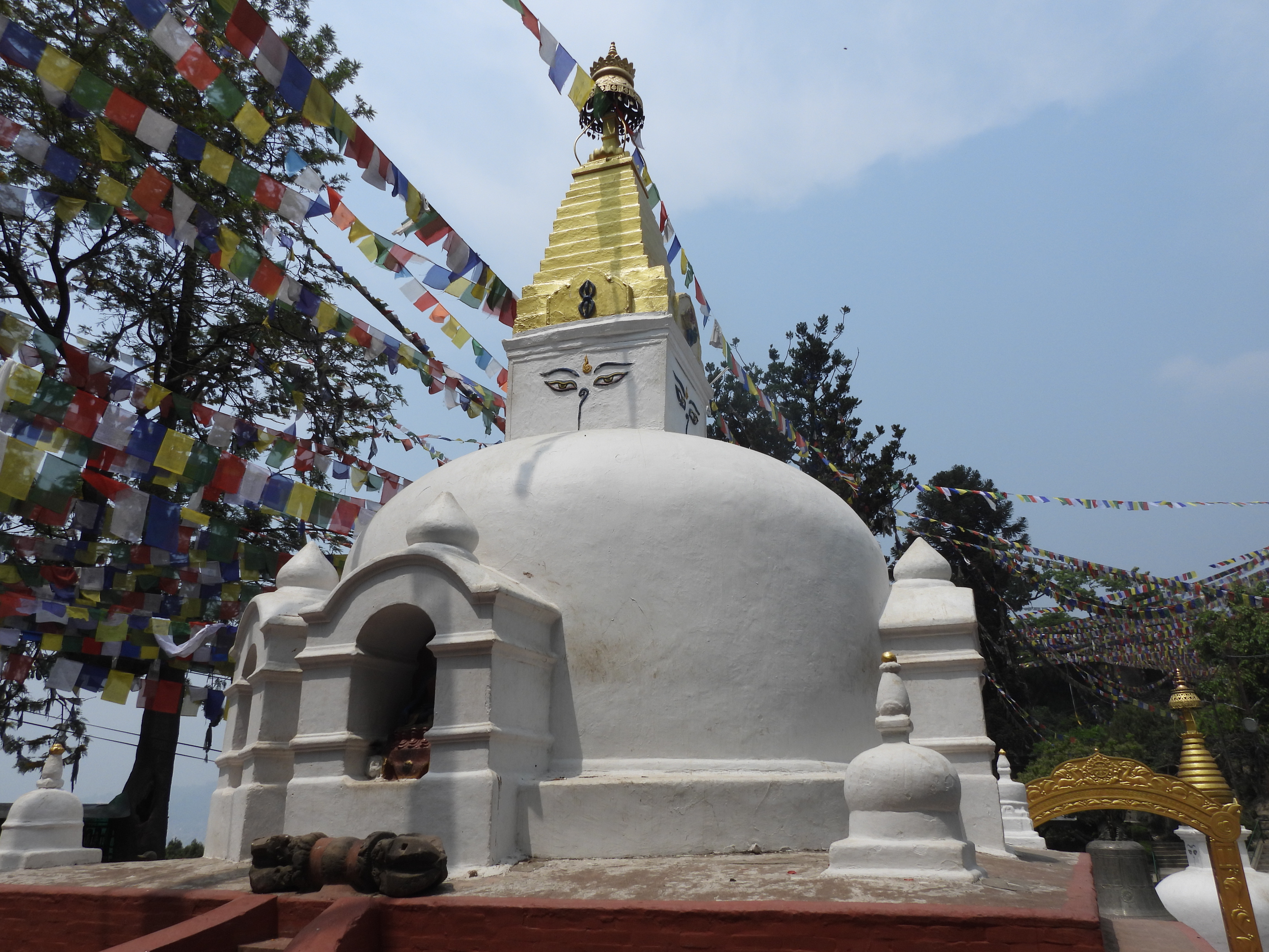 After that we went to the Monkey temple, which is Buddhist, but I saw signs of both Buddhism and Hinduism at both sites. And yes, there were monkeys everywhere! Many monkeys! Just as Hinduism recognizes all five senses, Buddhism and the five colors of the prayer flags represent the five elements of the earth. There are eyes looking at you everywhere, sometimes one eye, sometimes two. This is probably some version of being against the evil eye, or some form of protection.