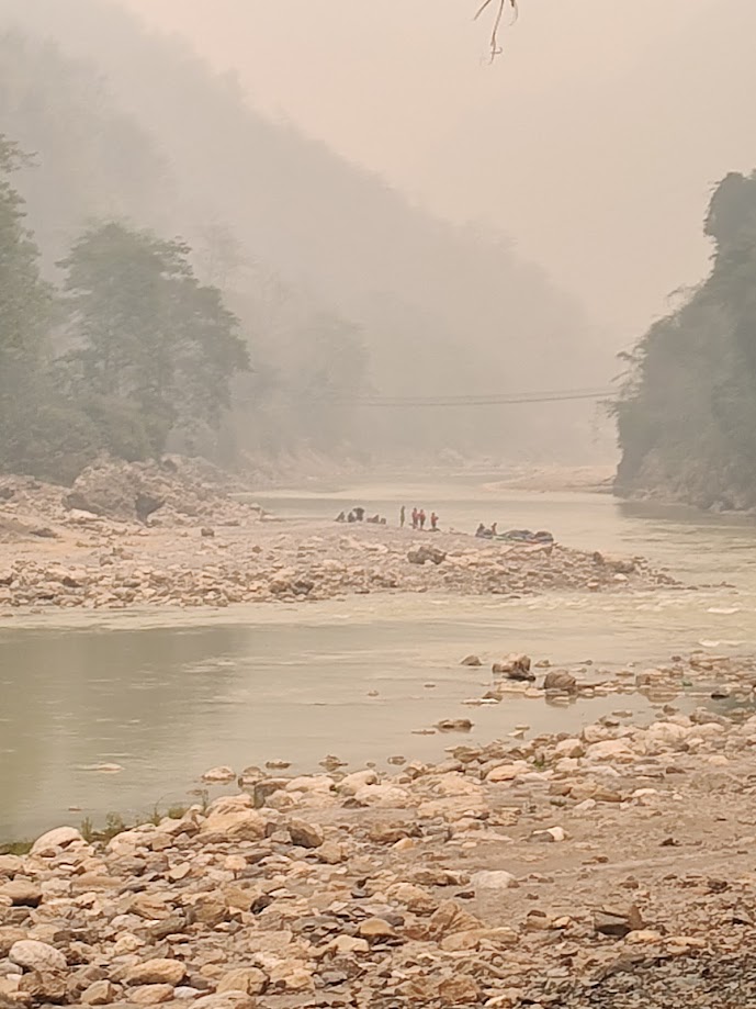 I cannot paddle due to an old rotator cuff injury which was not a problem. We had enough people for paddling and the rafting guides really wanted people to enjoy the experience. The scenery was beautiful, but not as breathtaking as I imagined because smoke from wildfires were dominating the landscape. Some were controlled burns or people cooking over wood and catching other dry brush which was causing the wildfires and smoke to continue for days. This level of smoke is common in Nepal in the spring. But the smoky and hazy landscape as we rafted down the river for three hours really muted what would otherwise be beautiful views with clear skies. So, for those who want to enjoy this experience and have a vibrant and unblemished view of the river and the Himalayan range, later in the year would be a better time. The river levels will be higher as well because of run off from the mountains after the Monsoon season.