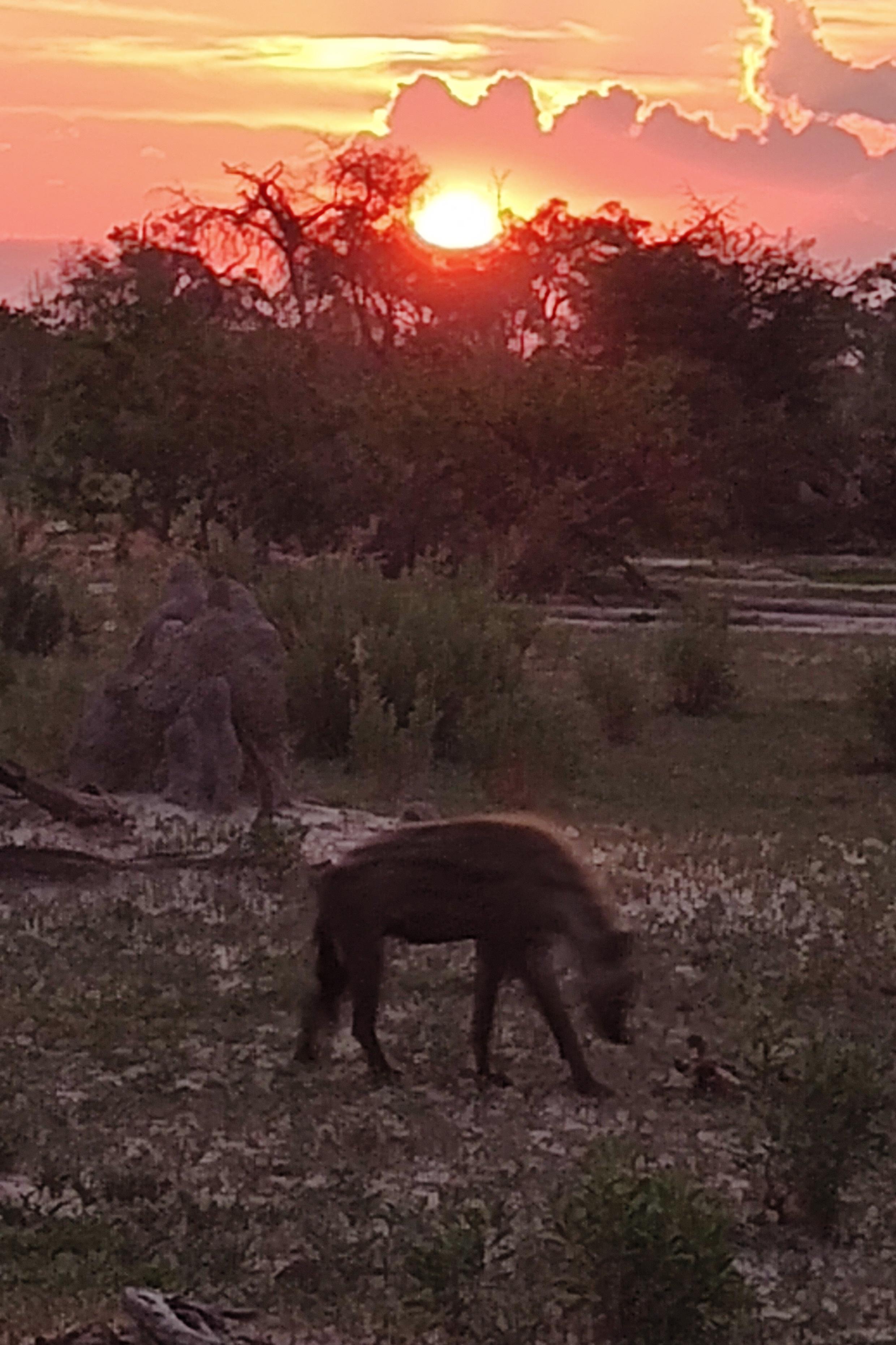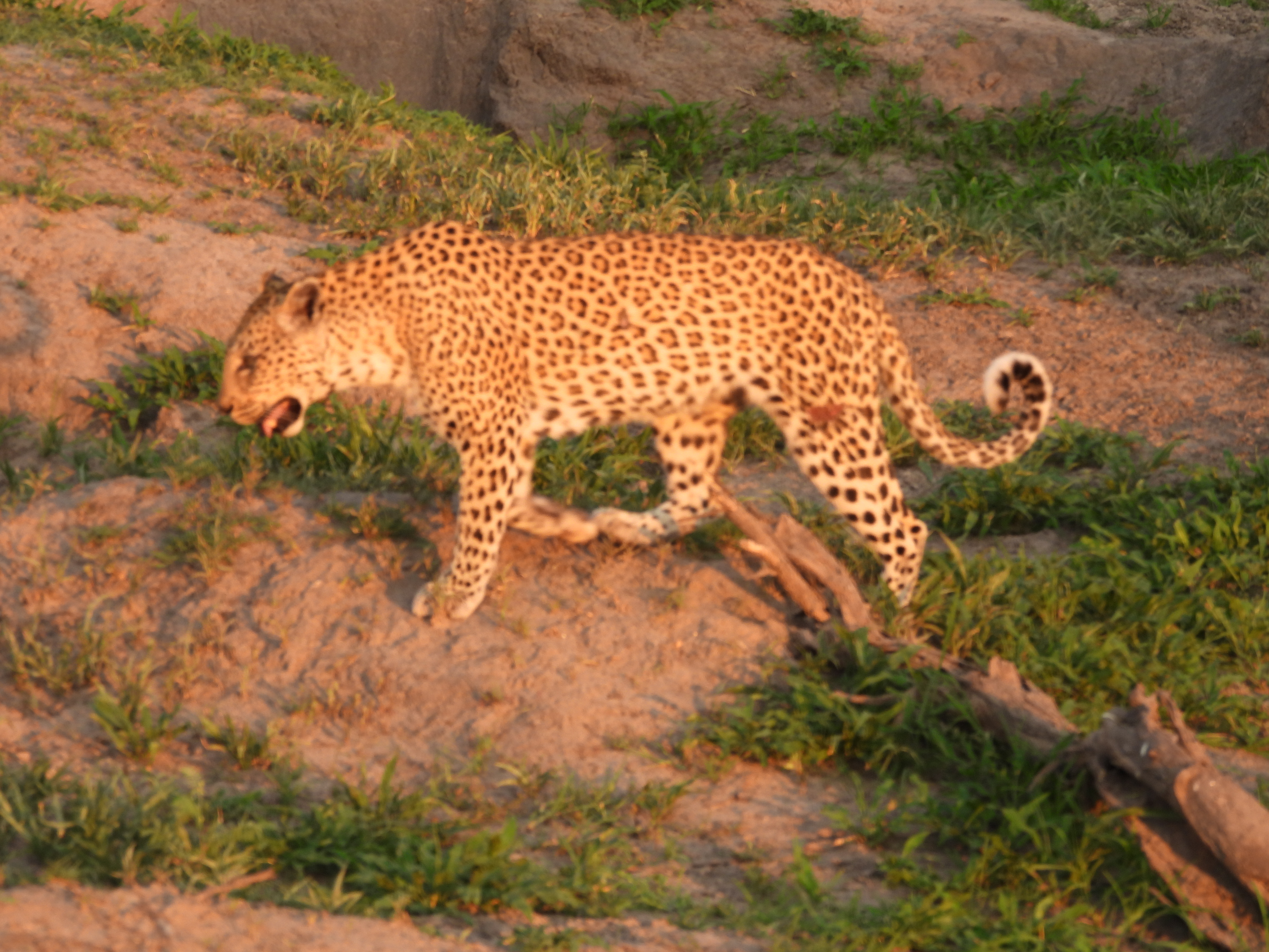 In Botswana’s Okavango Delta, we had the good fortune to spend between five and ten minutes observing a leopard despite all bets being off for seeing the spotted animal on the wild. On our final game drive, the safari drivers got word that one was around, and we were able to observe one for a generous amount of time. It was the last of the Big Five we hadn’t yet seen, and our safari drivers were adamant about finding them for us as we held on tightly to our unusually fast vehicles to get to the that part of the jungle in time to see the leopard. Leopards are usually up a tree, hidden, or go by very quickly in my experience, but this one took his time. I heard him growling before I saw him, and our guide saw his tracks, so we knew he was nearby. After racing to find this beautiful creature, he slowly emerged from the jungle and made his way to the watering hole where he spent a significant amount of time drinking in the midday heat. Then he stalked back into the jungle thicket and disappeared. Our guess was that he was out for a kill or had just had one, since vultures and hyenas were close by. The magnificent ending to our safari days only minutes afterwards was watching a spotted hyena eat leftover scavenged food as the blistering African sun was setting and this part of our African adventure was bidding us adieu.